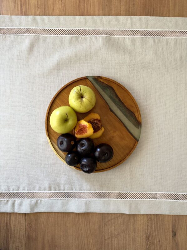 Bu sunum tabağı, sadece şık bir servis aracı değil, aynı zamanda günlük yaşamınızın vazgeçilmez bir parçası olacak şekilde tasarlandı. Kahvaltıda peynir, zeytin ve reçel çeşitleri için, özel davetlerde atıştırmalık ve mezeler için veya akşam yemeklerinde ana yemeğinizi sunmak için idealdir. Doğal yapısı sayesinde yiyeceklerinize ekstra bir tat katmaz, onlara sadece zarif bir sunum alanı oluşturur.